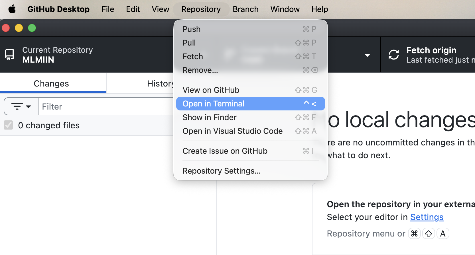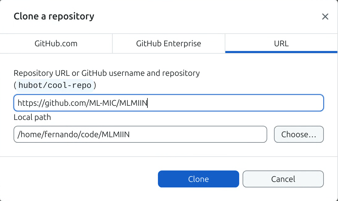 Go ahead and create these folders now inside your cloned repository folder (MLMIIN). Open a terminal (macOS) or PowerShell (Windows), navigate to your cloned repository folder, and run these commands in order: