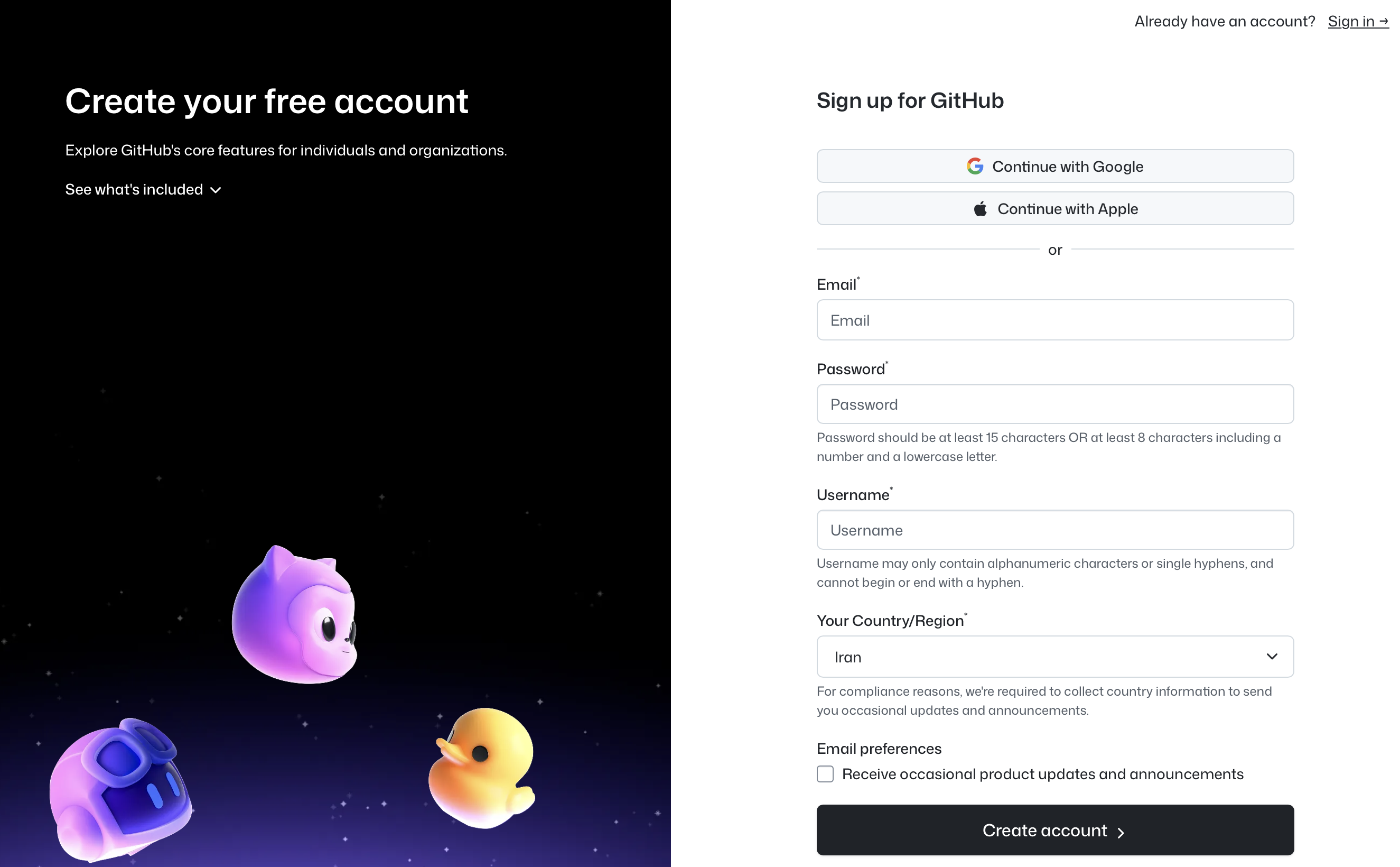 - If you haven’t already, we require that you create a free GitHub account, linked to your university email. You can do this by going to https://github.com/signup and following the instructions. You do not need to provide payment information for the free account!