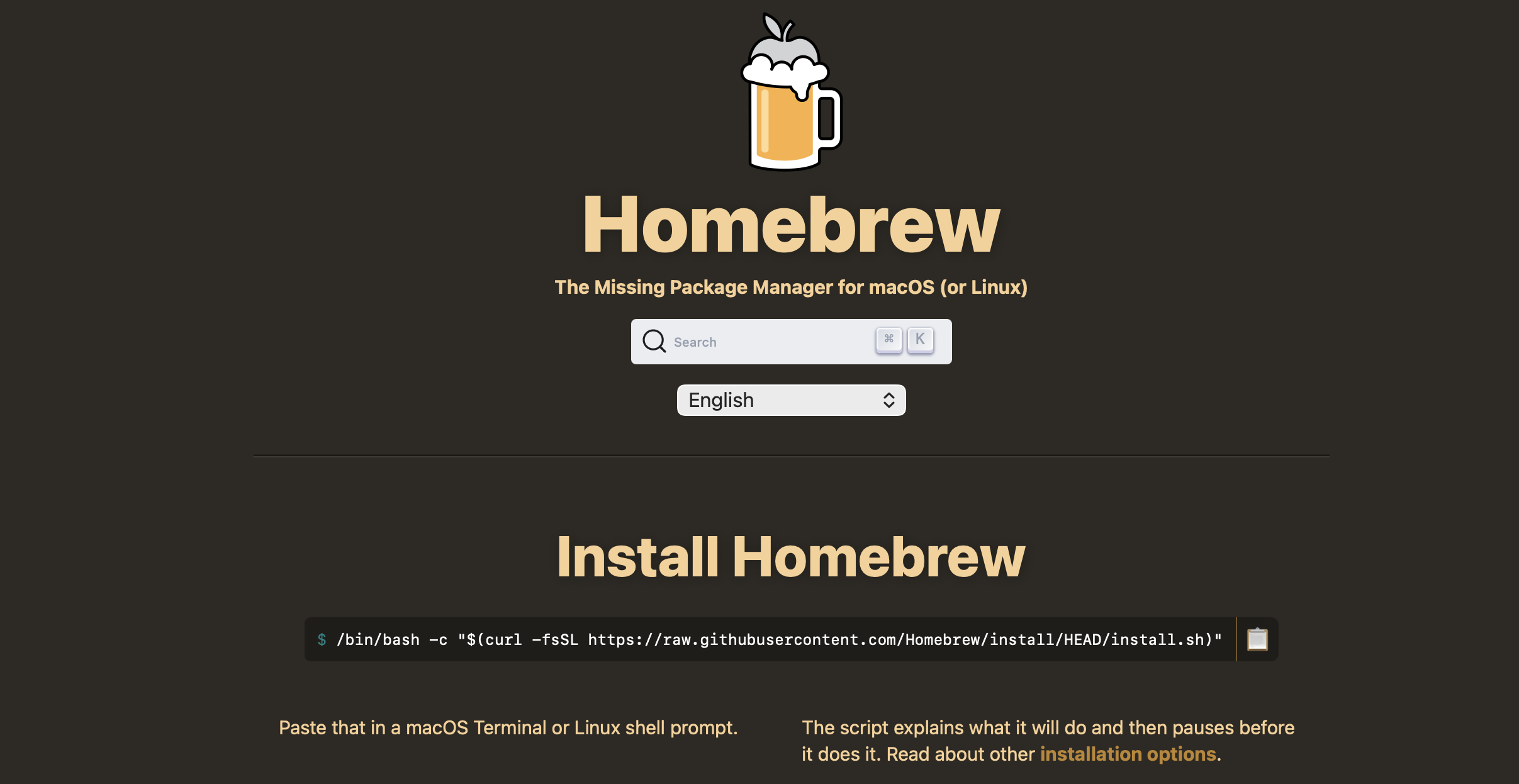 /bin/bash -c "$(curl -fsSL https://raw.githubusercontent.com/Homebrew/install/HEAD/install.sh)"When the Homebrew setup ends check it by running: